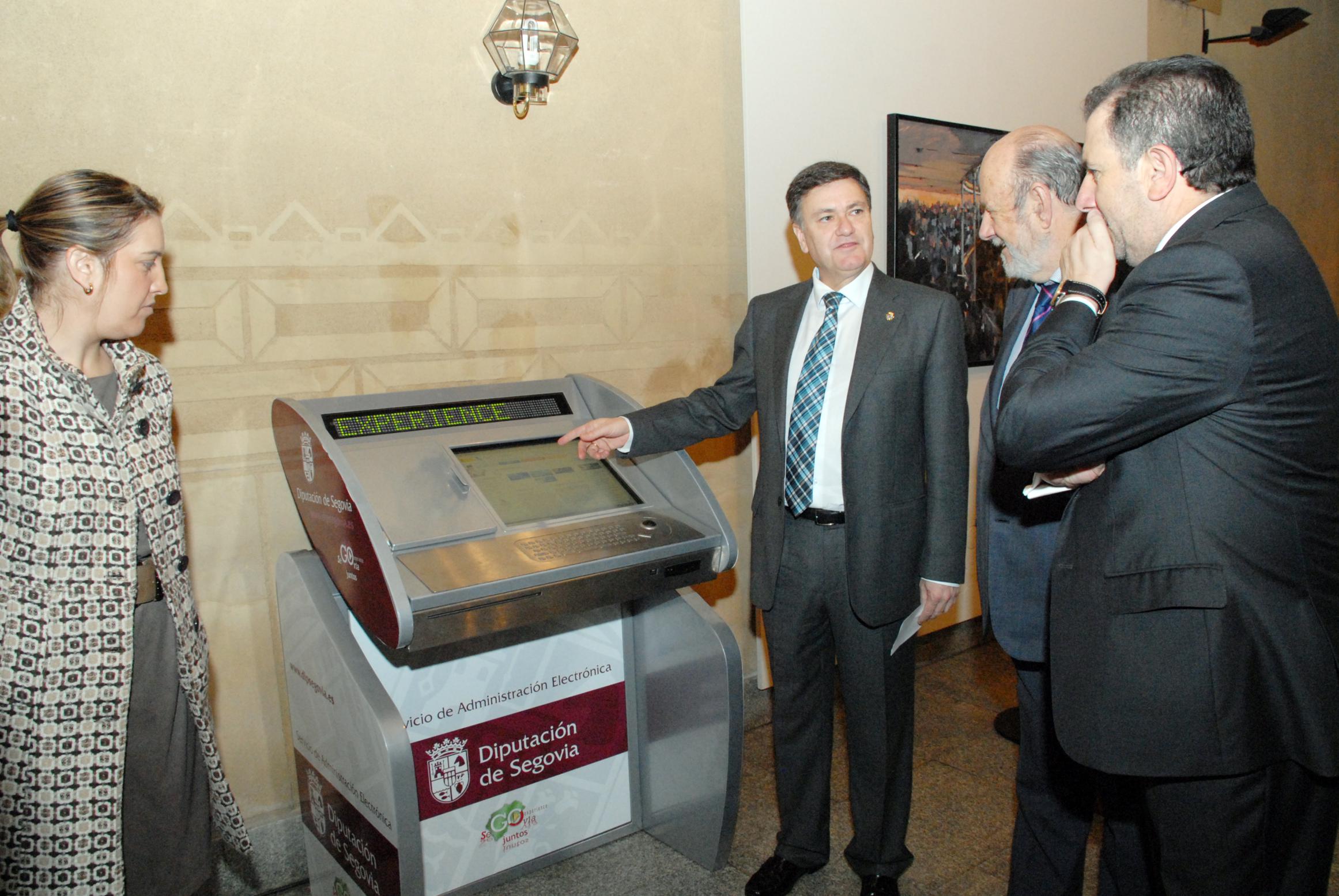 El presidente de la Diputación Francisco Vázquez acompañado por Diputado de Promoción Económica Rafael Casado, presentaron en el zaguán de la Diputación los nuevos monolitos informáticos que acercaran la administración electrónica a los ciudadanos de la Provincia.